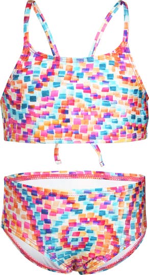 Your kiddo will love to splash and play in this bright two-piece with mid-rise bottoms.