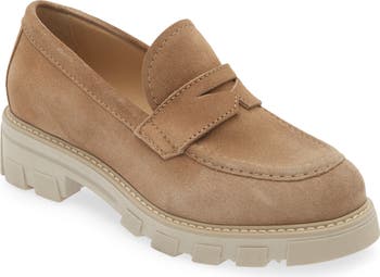 Waterproof suede elevates a luxe penny loafer lifted by a chunky platform and modest block heel. A well-cushioned footbed promises lasting comfort and ample arch support.