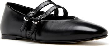 Timelessly charming, these smooth leather flats feature a classic square toe and double Mary Jane straps with dual buckles.