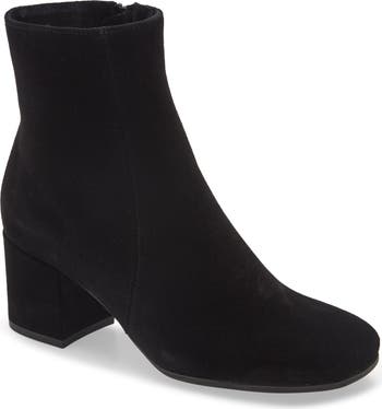 Chic style and all-weather practicality beautifully combine on this waterproof square-toe bootie handcrafted in Italian suede and lifted by a block heel.