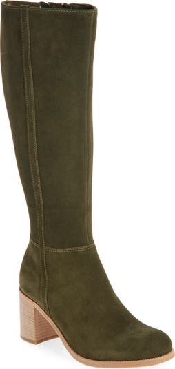 A stacked block heel brings walkable height to this knee-high boot cut from supple leather.