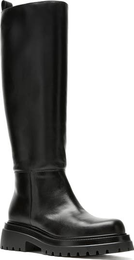 A chunky lug sole and back heel tab lend utilitarian edge to this sleek knee-high boot crafted from waterproof leather.
