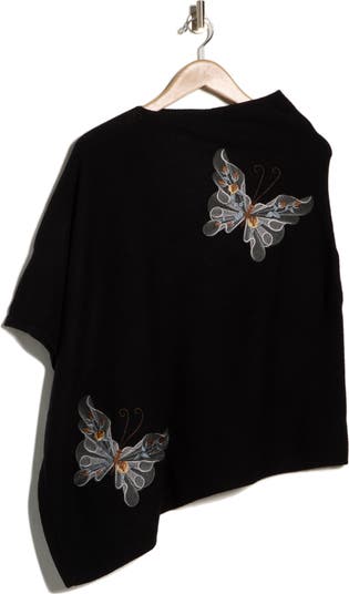 Embroidered butterflies flutter along this cozy poncho that'll add a statement layer to any cold-weather look.