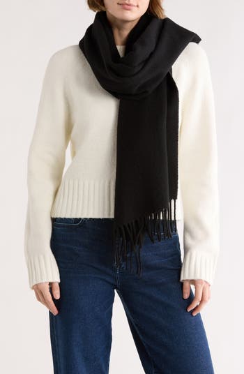 Keep it toasty in this Italian scarf finished with fluttery fringe trim.