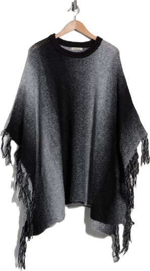 Add a toasty layer to your look with this ombré-knit poncho finished with fluttery fringe trim.