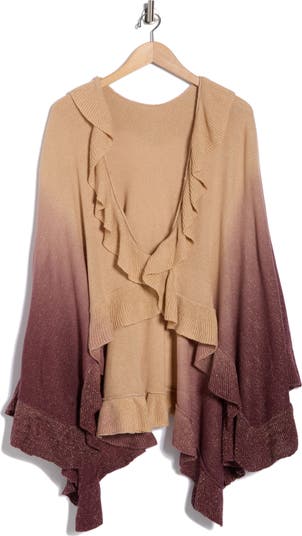 Frilly ruffles frame this ombré ruana flecked with metallic fibers for a standout layer on chilly days.