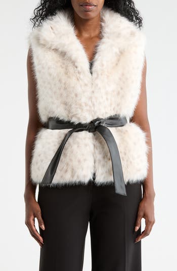 Keep cozy when the temperature drops in this vest made from fabulous faux fur and framed by a faux-leather waist tie belt.