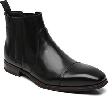 Exude polished style in this smooth leather Chelsea boot featuring an elegant cap toe, a back pull tab and a nonslip sole.