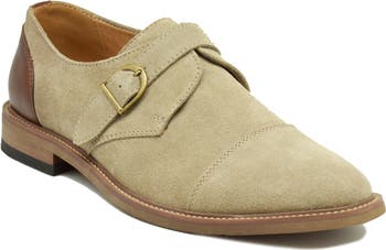 A single monk strap adds timeless sophistication to a luxe loafer designed with a plain toe and faux-leather upper.