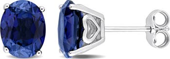 Lab-created blue sapphires are housed in sterling silver settings to create a vibrant pair of stud earrings that'll enrich any ensemble.