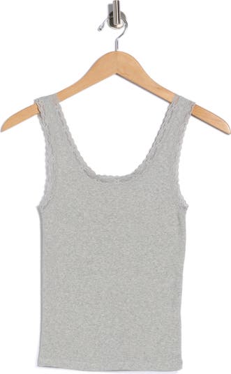 Delicate laces add a delightful trim to a scoop neck tank top made from pure, breathable cotton for easy layering.