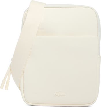 Carry your essentials in this logo-stamped crossbody bag framed by exterior pockets, an adjustable webbed strap and a secure top-zip closure.