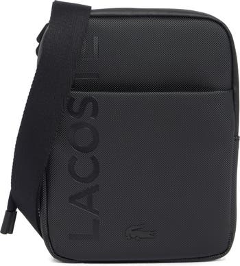 Carry your essentials in this logo-stamped crossbody bag framed by exterior pockets, an adjustable webbed strap and a secure top-zip closure.