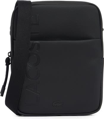 Carry your essentials in this logo-stamped crossbody bag framed by exterior pockets, an adjustable webbed strap and a secure top-zip closure.
