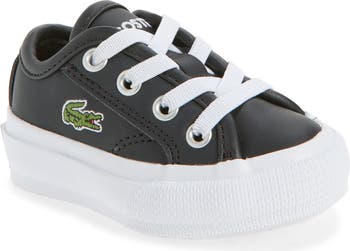 Lacoste's mascot brings heritage charm to a kid-approved sneaker done in a low profile and topped with stretchy laces for an easy on-off fit.