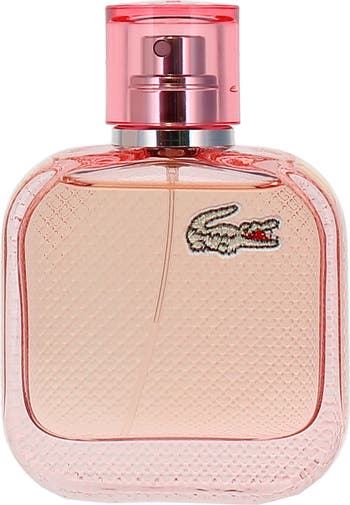 Fragrance story: L.12.12 Rose Sparkling reveals vibrant femininity with an ambery fruity scent. Juicy mandarin and lily of the valley meet a gourmand macaroon accord, contrasted by patchouli and vetiver for addictive comfort. The bottle features the iconic 'petit piqué' pattern and a silver metallic embroidered crocodile for a 'Sparkling' touch.