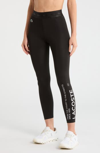Tackle your toughest workouts in these stretchy leggings branded with logo lettering and signature crocodiles.