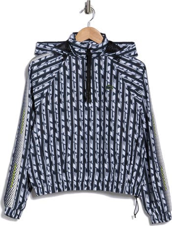Logos run on repeat emboldening this lightweight windbreaker that features a drawcord-toggle hood and hem for a bit of customization.