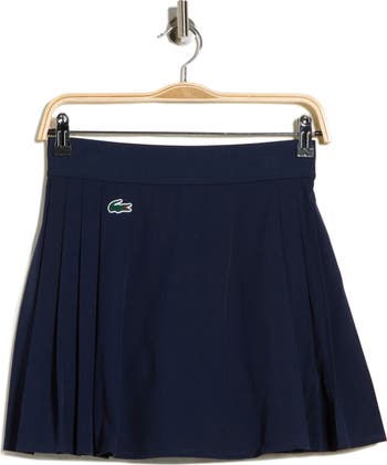 Front pleats and an embroidered croc logo enhance the preppy style of this sporty miniskirt fashioned with integrated shorts for comfortable coverage.