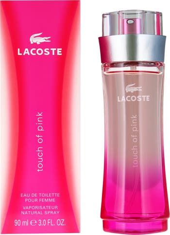 Fragrance story: A fragrance for the independent and spontaneous person with the magnetism of vitality. Fashioned in vibrant pink and white, the Lacoste Touch of Pink bottle embodies the scent's effortless charm.