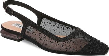 Embellish your date night or soirée look with this mesh slingback flat adorned in faceted tonal stones and grounded by a low heel.