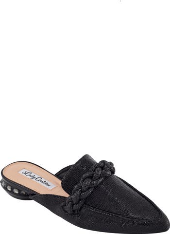 Adorned with dewy rhinestones, this almond-toe loafer mule is designed for special occasions. A braided vamp strap and low heel complete the elegant silhouette.