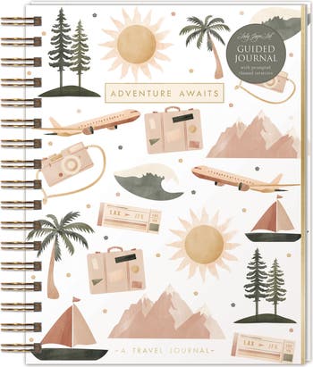 Capture your adventures in this travel journal designed with space for memories, mementos and souvenirs.