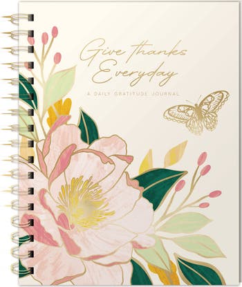 Find something you're thankful for every day in this gratutitude journal covered with blooms on the cover.