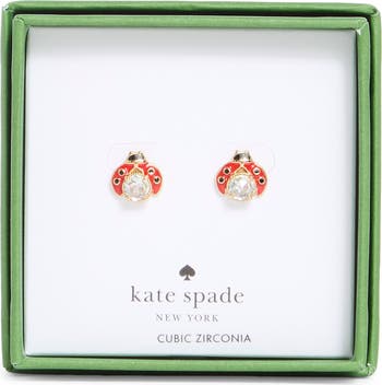 Put a sweet finishing touch on your ensemble with these ladybug-shaped stud earrings centered with prong-set cubic zirconia.
