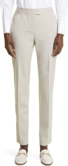 Slim, tapered legs with side-slit cuffs style these essential stretch-wool trousers.
