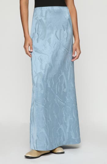 This maxi shirt makes a quiet statement with its subtle curvilinear jacquard pattern inspired by the dust that comes off a charcoal pencil. Featured in the lookbook for the label's 'In the Drawing Studio' collection, it comes in a shade of blue borrowed from charcoal paper.