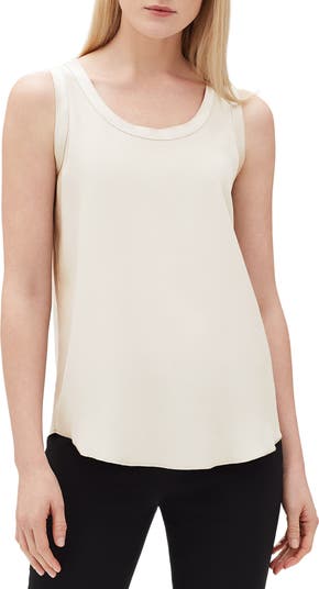 A versatile scoop-neck tank doubles its wearability as it reverses from a softly luminous sheen to a matte-finish side.