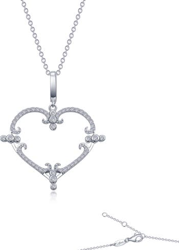 Round-cut clear simulated diamonds trace the open silhouette of this heart pendant strung on a chain necklace.
