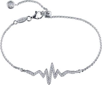 Consider this elegant bracelet dusted with sparkling simulated diamonds a lasting reminder to follow the beat of your own heart.