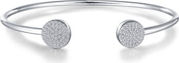 Slender and stackable, this gleaming precious-metal cuff illuminates your wrist with discs encrusted with dazzling simulated diamonds.