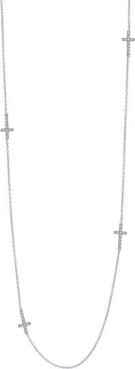 Pavé crosses station around this ultralong chain necklace crafted from sterling silver bonded with platinum.