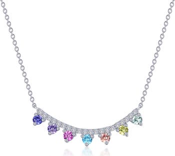Simulated diamonds and lab-grown sapphires lend a bold pop of shine to the bar-like pendant centered on this necklace that perfectly encapsulates glitz and glamour.