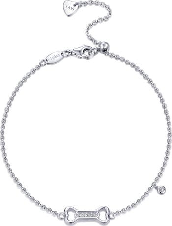 Celebrate a canine friend with this dainty bracelet featuring a dog bone charm set with shimmering simulated diamonds.