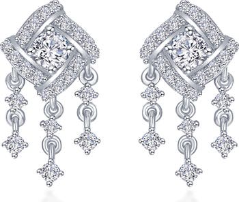 Simulated diamonds embolden the glitz and glamour of chandelier drop earrings designed to illuminate your lobes on special occasions.
