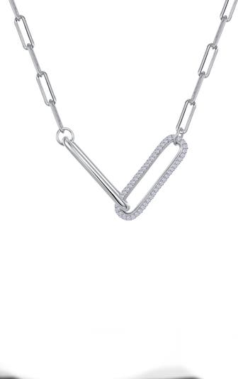 A center link covered in simulated diamonds adds a touch of sparkle to this contemporary and elegant paperclip necklace.