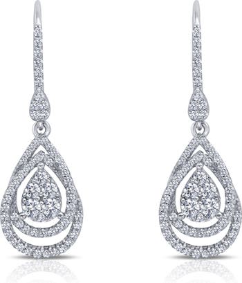 Elevate your evening ensembles with these pear-shaped drops showcasing a cluster of clear simulated diamonds.