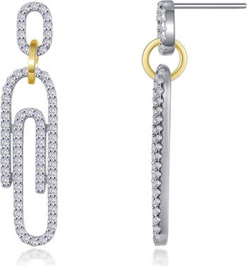 Paperclip charms covered in pavé simulated diamonds sparkle on these stunning two-tone earrings.