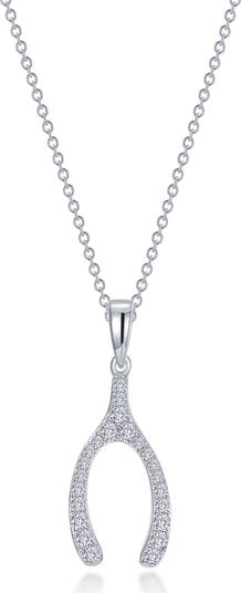 Simulated diamonds bring luxurious sparkle to a wishbone pendant necklace crafted from platinum-bonded sterling silver.