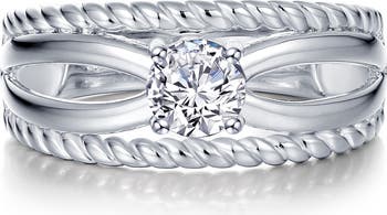 Light up any stack with this textured band set afire with a center simulated diamond and a high-polish finish.