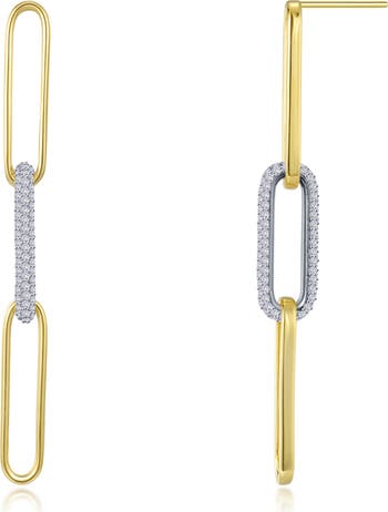 Slender paperclip links alternate with a center link covered in sparkling simulated diamonds to elevate your special occasion style.