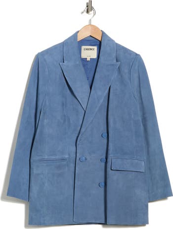 Embossed buttons lend subtle shine to this posh blazer crafted from pure suede.