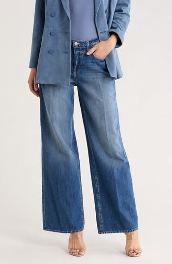 These dark-wash jeans are crafted from nonstretch denim with a high waist and wide legs.