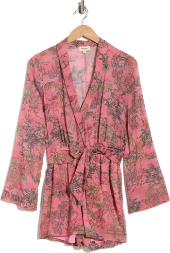 Refresh your weekend wardrobe with this long-sleeved romper cinched with a tie belt and covered in an artistic kesi print.