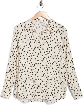 Mother-of-pearl shell buttons add a luxe finish to a button-front top that looks polished tucked or untucked.
