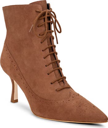 This leather bootie with Victorian influences, such as a lace-up vamp and wingtip stitching, is ready for all-day wear with memory foam cushioning.